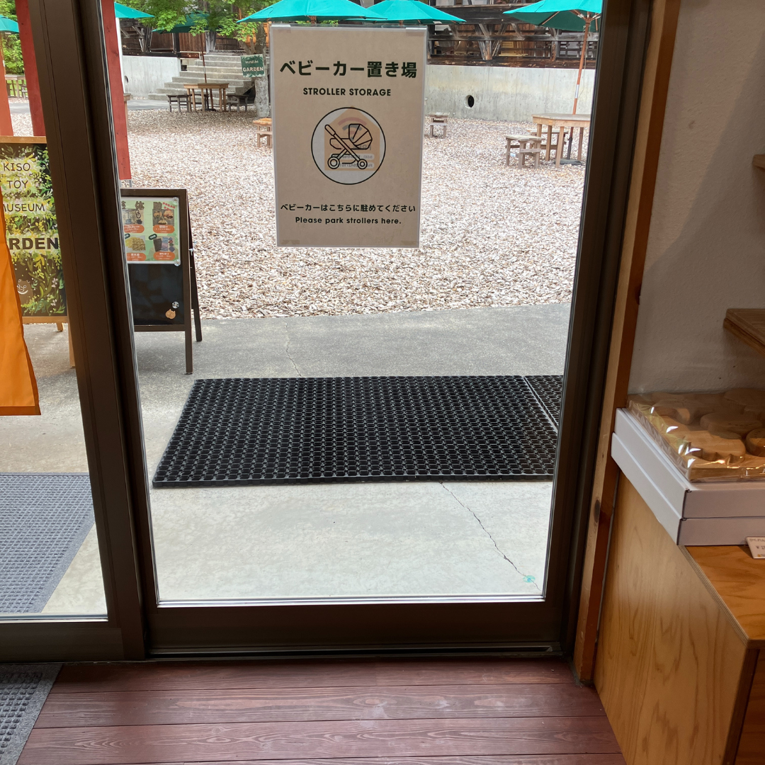 受付付近にベビーカー置き場がございます。畳んで置いていただきますようお願いします。赤ちゃんが眠っている場合や障がいのあるお子さんでバギーでのお越しの方は、受付にお声がけください。