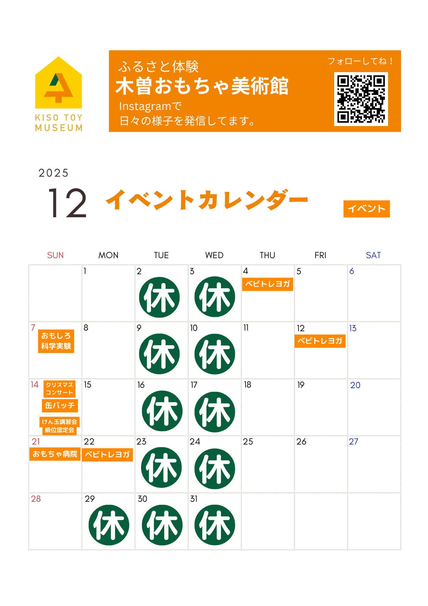11月は、一部火曜日と以前休館日の水曜日がお休みとなります。