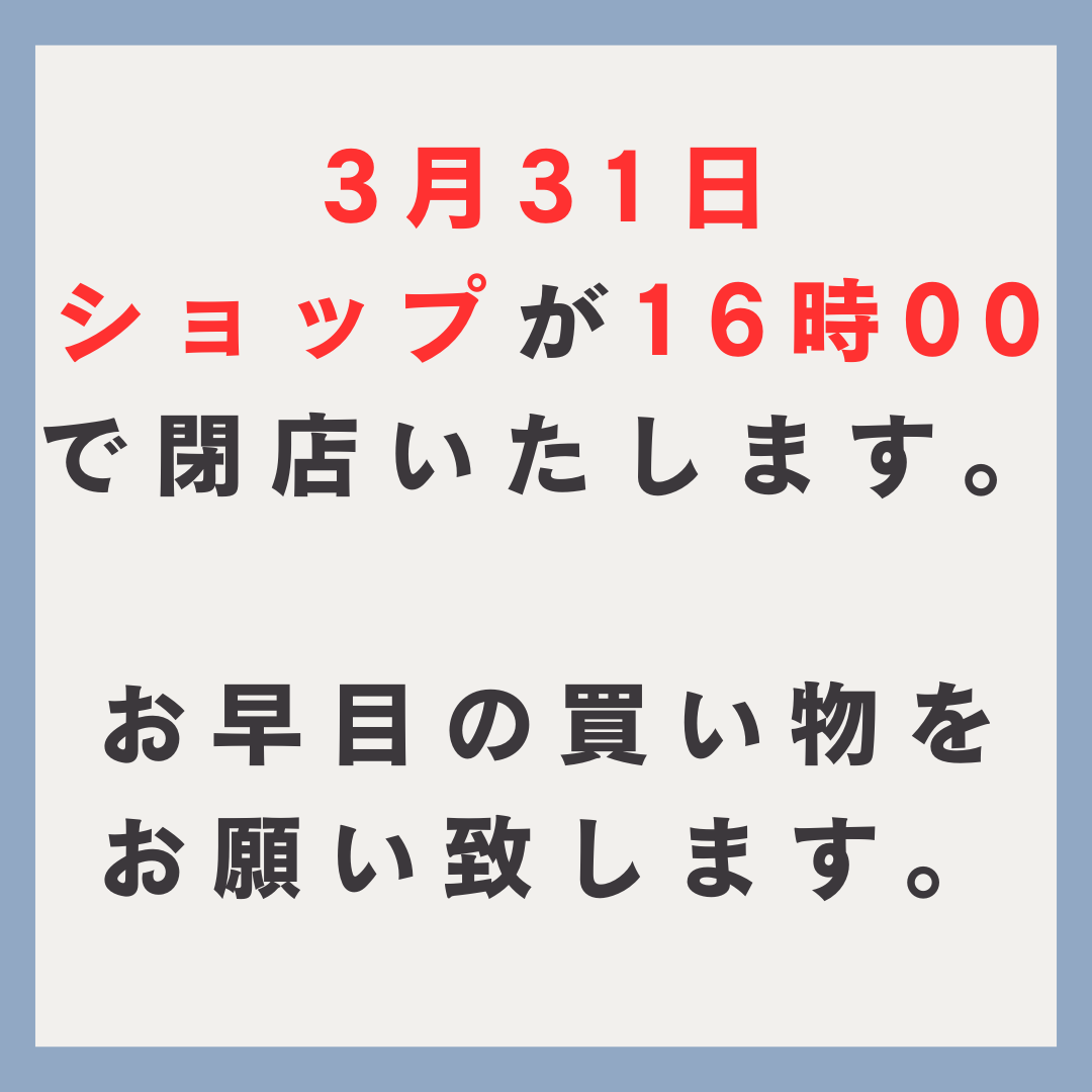 On March 31st, the store will close at 4:00pm due to inventory . Please come ea…