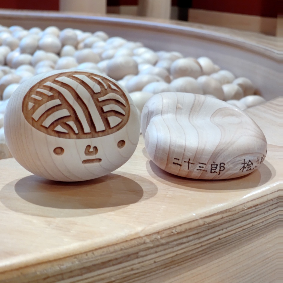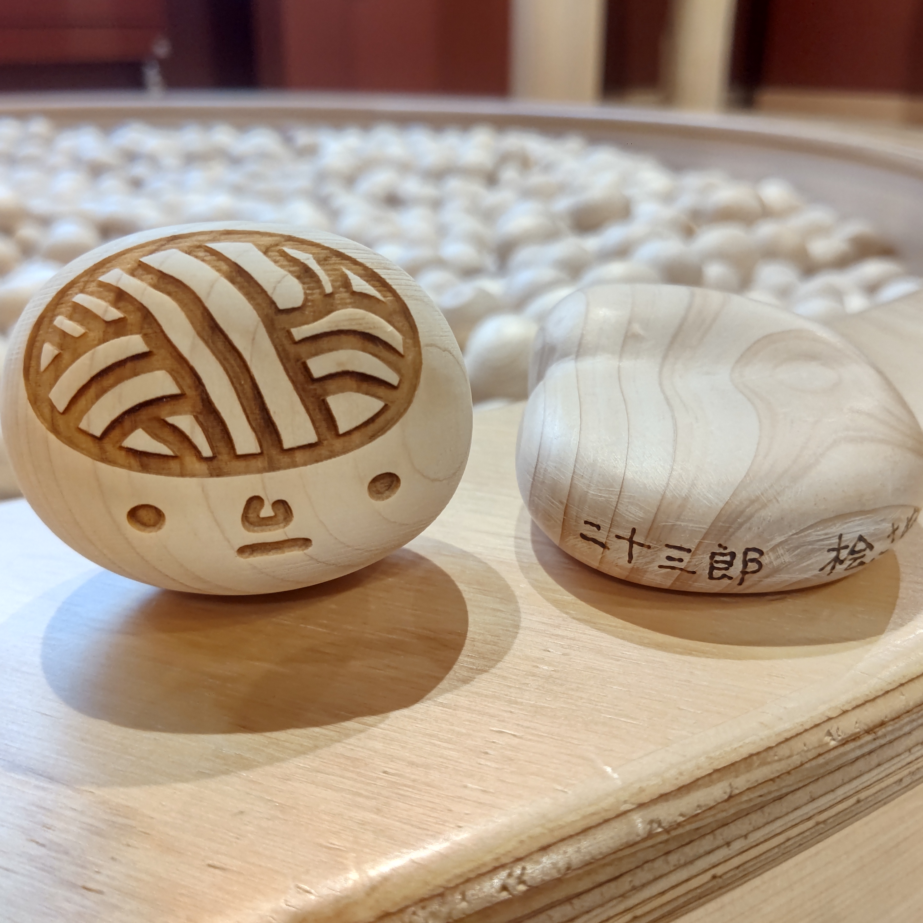 The egg pool also contains a large shii egg (the only hardwood egg at the Kiso Toy Museum) that was donated by the Nagato Toy Museum.